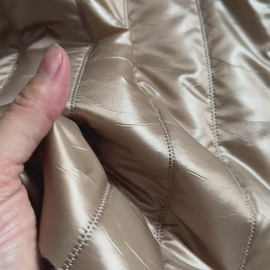 Le matelassé VERENZA est un tissu léger, lumineux et chic. Sa finition dorée satinée apporte une touche moderne et précieuse à vos créations.