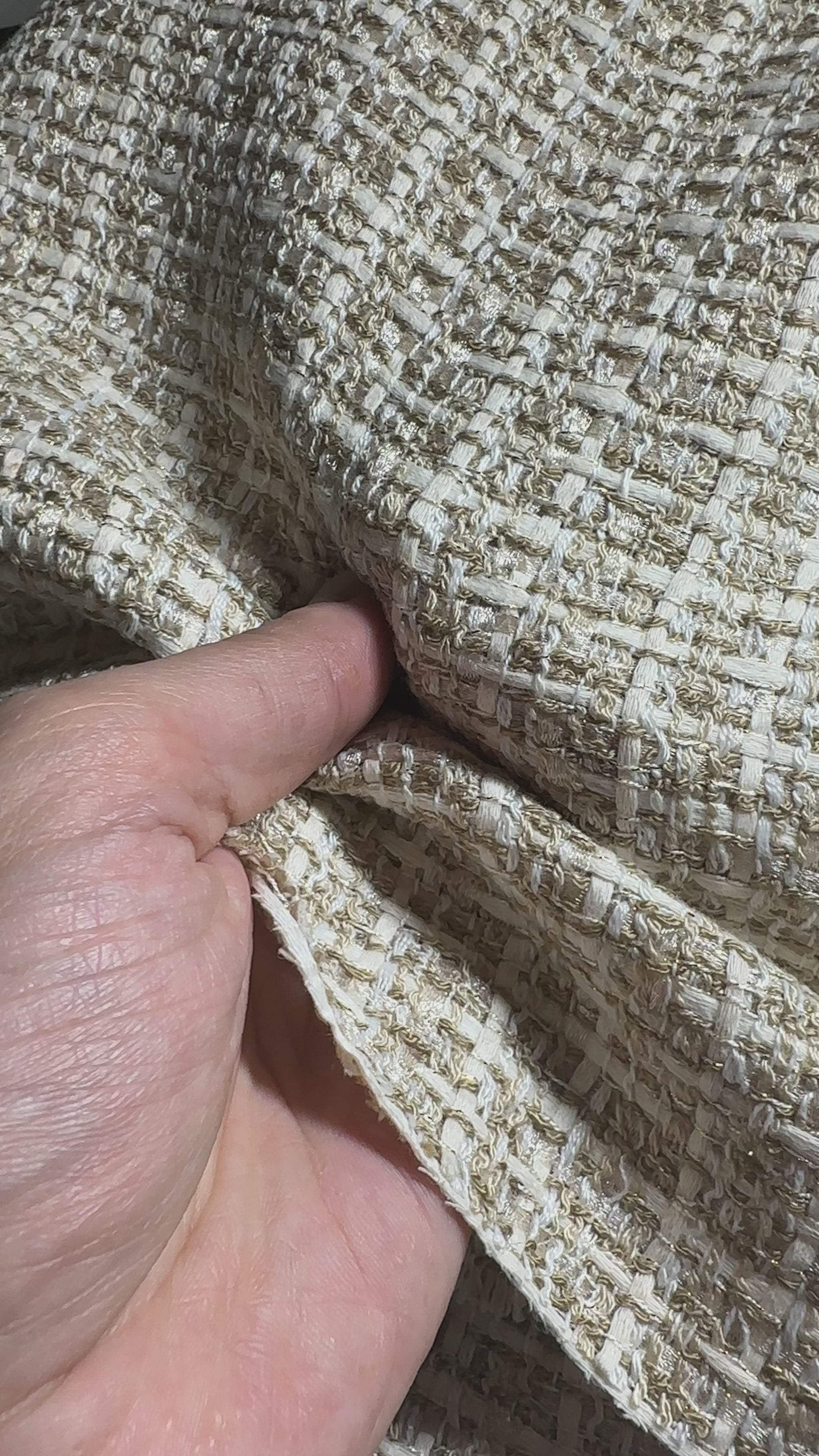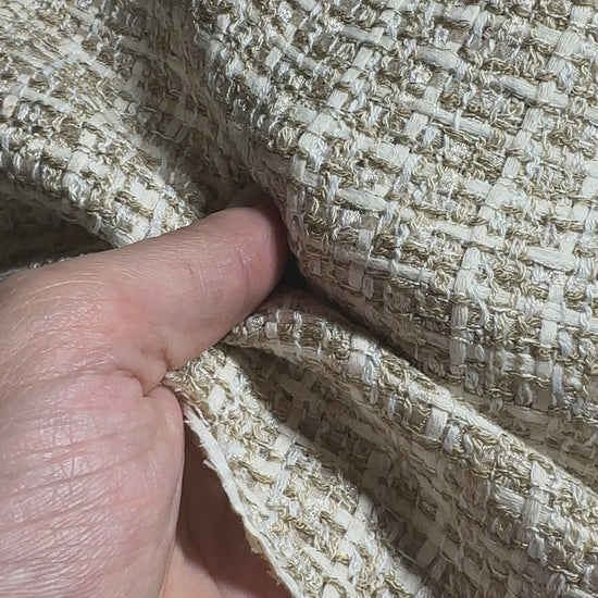 Ce tweed beige & or illumine toutes tes créations avec sa texture nattée et ses reflets dorés subtils.
